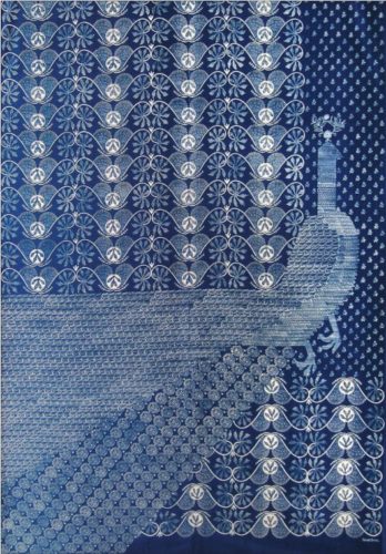 Bódy Irén: Pávás falkép / Irén Bódy: Wall- hanging with Peacock 1970-es évek, kékfestô bársony (Kékfestô Múzeum, Pápa) / 1970s, blue-dye velvet (Museum of Blue- dyeing, Pápa) [270x166 cm] -